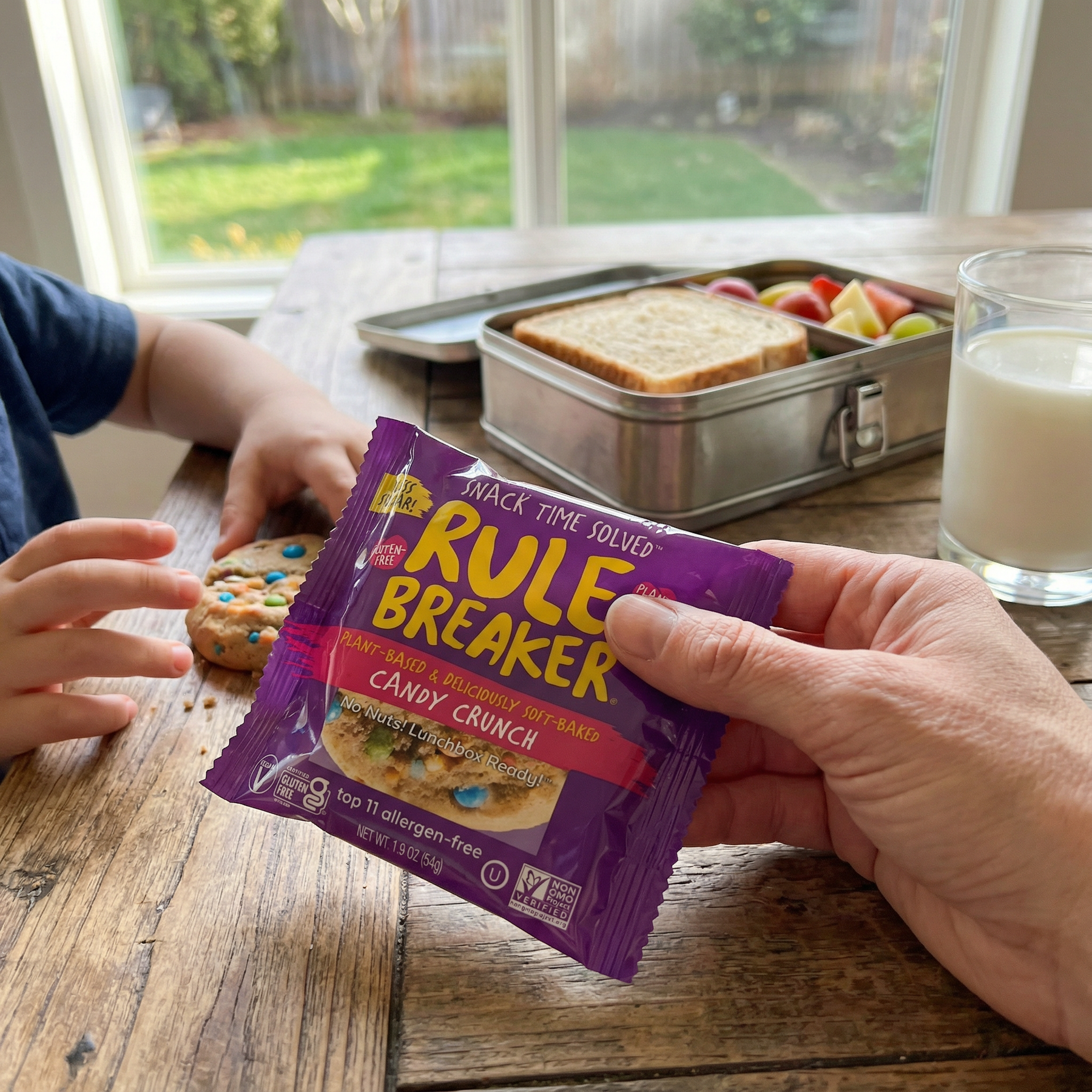 Rule Breaker Snacks Candy Crunch is a soft-baked vanilla cookie packed with colorful, candy-coated chocolate bits— and absolutely irresistible. And you’d never guess chickpeas are the first ingredient (yep… chickpeas!).